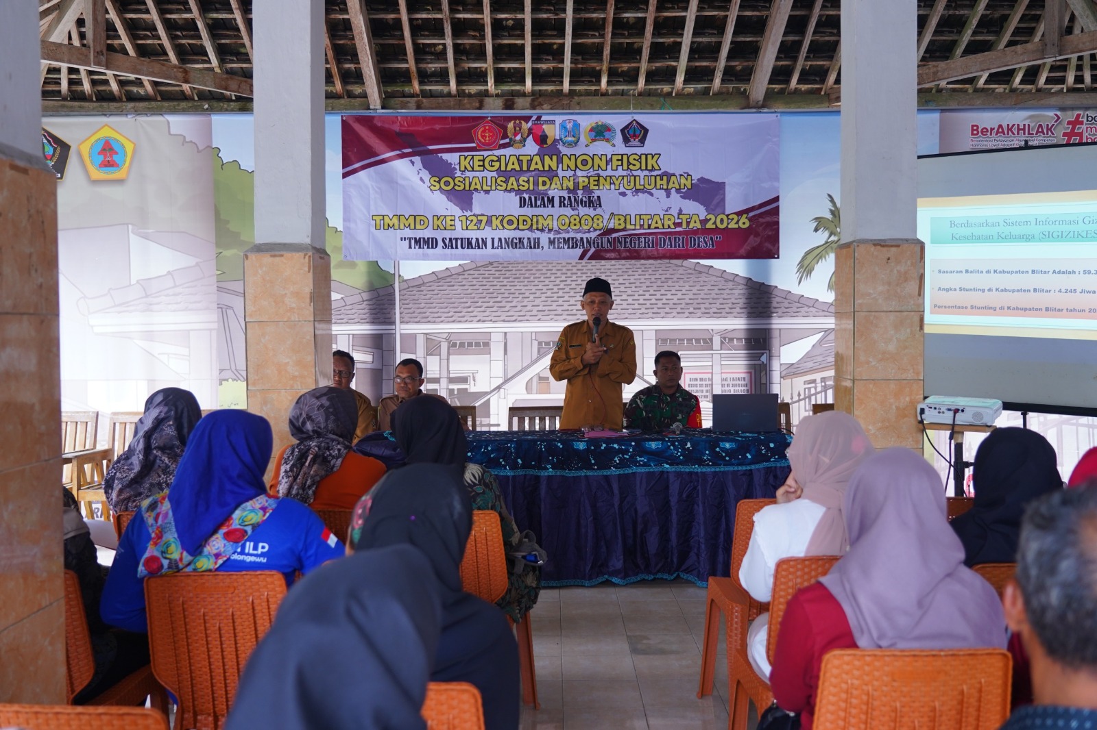 Blitar – Satuan Tugas (Satgas) TNI Manunggal Membangun Desa (TMMD) ke-127 Kodim 0808/Blitar menunjukkan komitmennya dalam meningkatkan kualitas kesehatan masyarakat melalui aksi nyata pendampingan stunting di Desa Krisik, Kecamatan Gandusari, Kabupaten Blitar. Kegiatan ini merupakan bagian dari program non-fisik TMMD yang bertujuan menurunkan angka gagal tumbuh pada anak di wilayah sasaran, Minggu (8/3/2026).