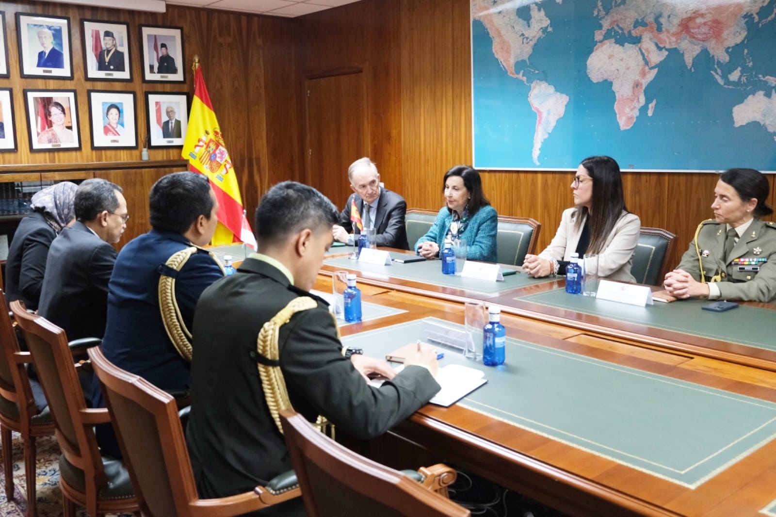 Spanyol – Atase Pertahanan (Athan) RI Kolonel Pnb Agus Dwi Aryanto beserta Kepala Kanselerai Ria Uki Suharsi mendampingi Duta Besar RI di Madrid Dr. Muhammad Najib, menerima kunjungan Menteri Pertahanan (Menhan) Spanyol Margarita Robles Fernández dalam rangka meningkatkan hubungan diplomasi pertahanan antara Indonesia dan Spanyol, bertempat di Kantor Kedutaan Besar Republik Indonesia (KBRI) Madrid, Spanyol, Rabu (8/4/2026).
