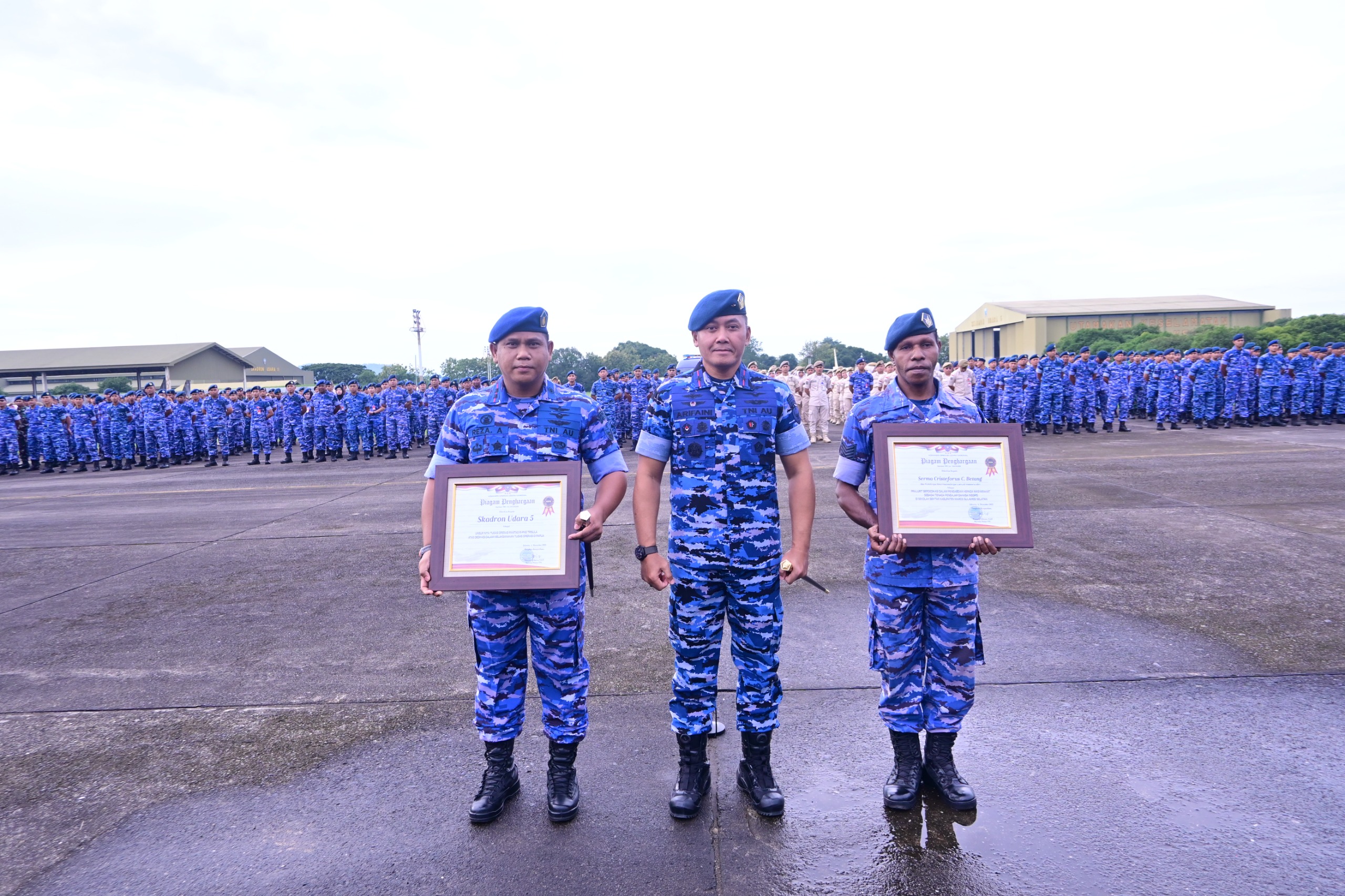 Seusai pelaksanaan Apel, Danlanud Sultan Hasanuddin juga memberikan apresiasi atas raihan penghargaan yang diberikan Koopsudnas kepada Skadron Udara 5 atas dedikasinya dalam pelaksanaan tugas operasi di Papua sebagai unsur intai tugas operasi Pamtas RI-PNG Trisula dan diterima langsung oleh Danskadron Udara 5 Letkol Pnb Reza Alkautsar, ST., selain itu penghargaan prajurit berdedikasi dalam pengabdian ke Masyarakat juga diberikan kepada Serma Cristeforus C. Betang, Ba Binter Lanud HND atas dedikasinya sebagai tenaga pengajar Bahasa Inggris di sekolah sekitar Kab. Maros. (Pen Lanud Sultan Hasanuddin)