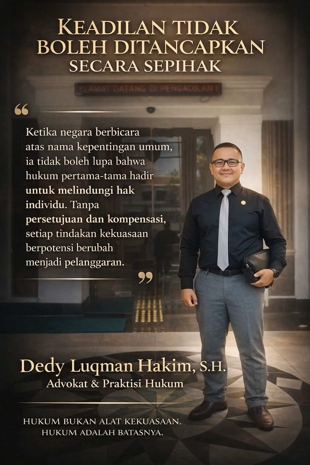 “Hukum tidak boleh tunduk pada kekuasaan. Justru kekuasaanlah yang harus tunduk pada hukum. Ketika itu dibalik, maka yang lahir bukan negara hukum—tetapi negara kekuasaan.”