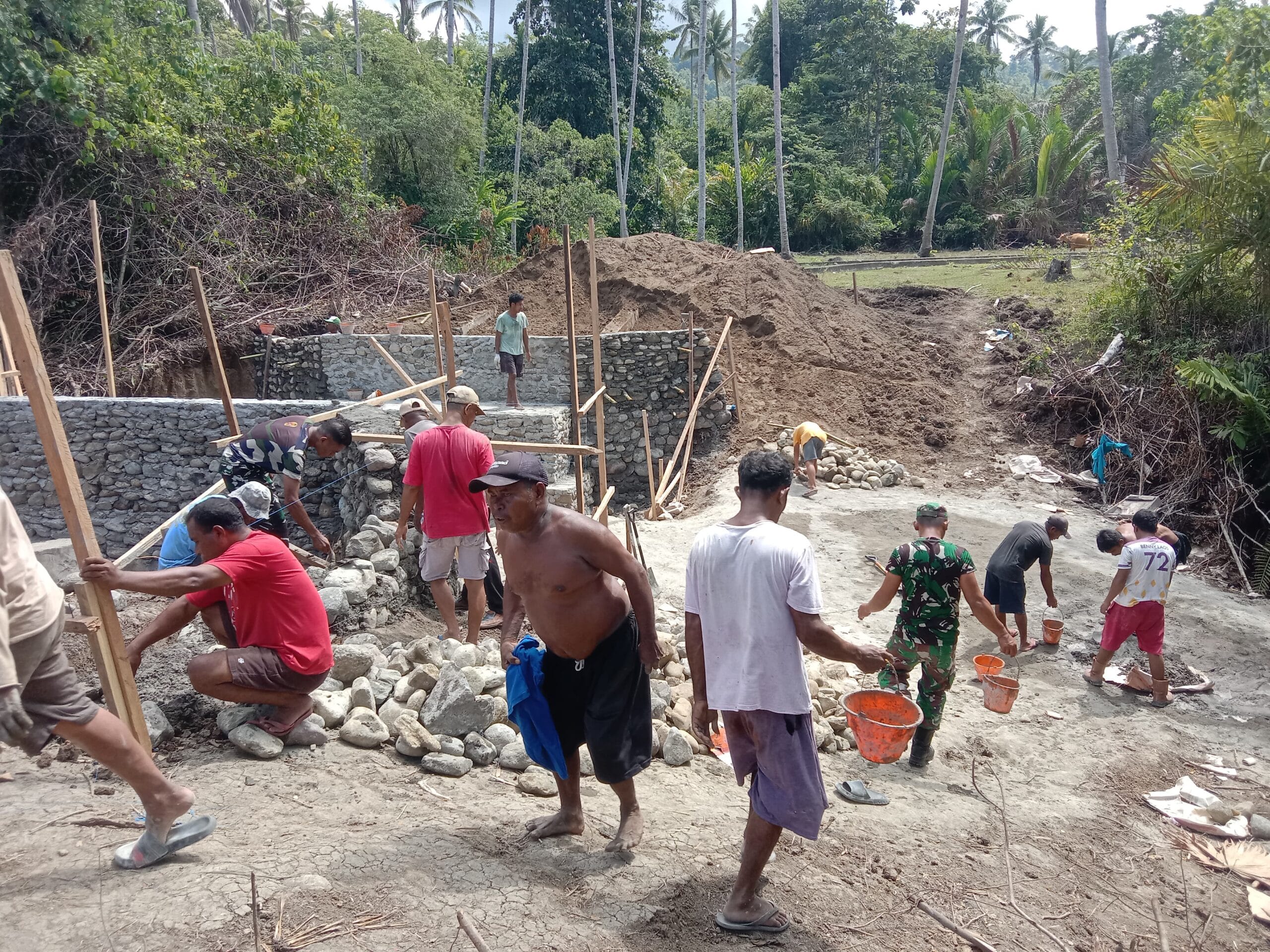 Babinsa Kodim 1505/Tidore Serda Risno di lokasi menyampaikan bahwa pengerjaan dilakukan secara bertahap dengan mengutamakan kualitas, agar jembatan yang dibangun dapat digunakan dalam jangka waktu yang lama serta memberikan manfaat maksimal bagi masyarakat.