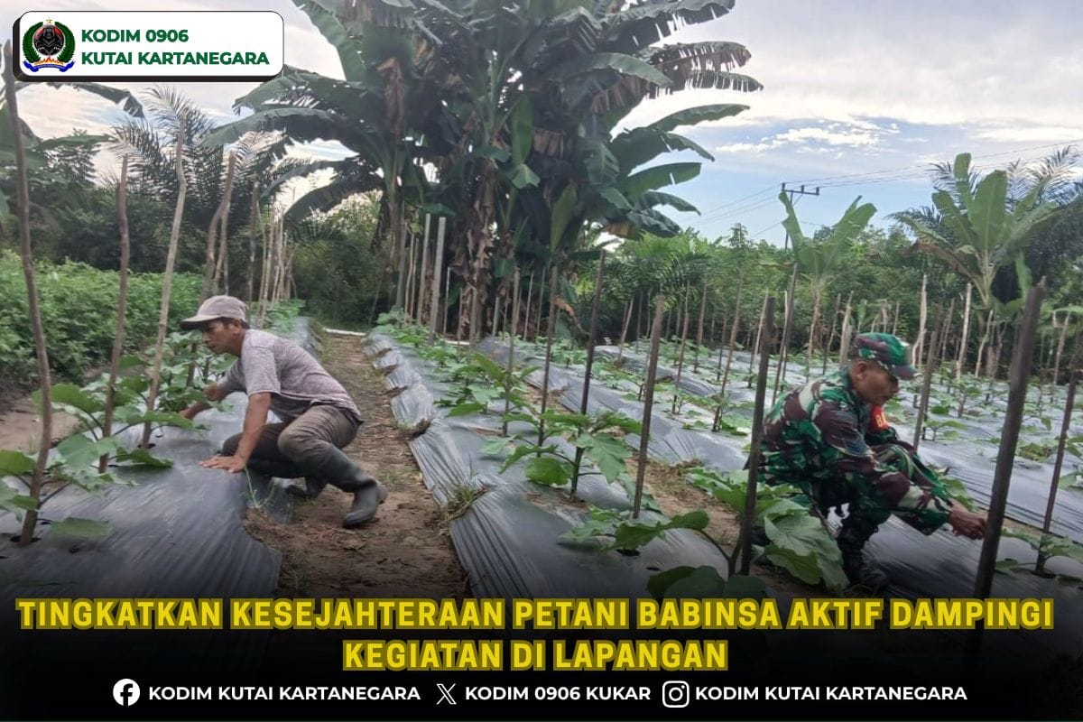 Kutai Kartanegara. pelitapers.com- Dalam mendukung meningkatkan kesejahteraan petani yang ada di wilayah binaan, anggota Babinsa Koramil 0906-08/Muara Kaman Serma Makbul melakukan pendampingan kepada petani terong yang berada di wilayah binaan tepatnya rt 08 Desa Muara Kaman Ulu Kecamatan Muara Kaman, Senin 20/4/26.